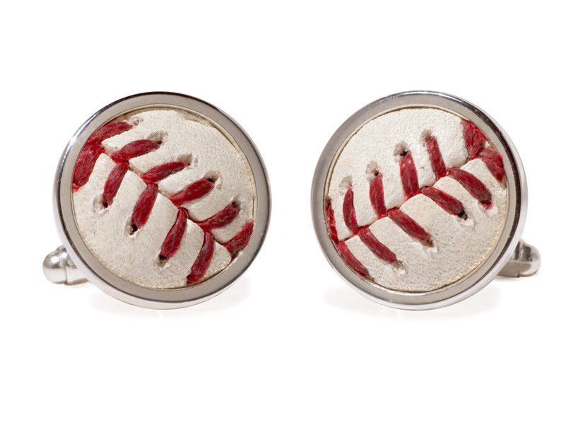 Set in sterling silver with swivel findings, these cuff links feature the unmistakable red stitching and the little scratches and scuffs that let you know they have seen game-play. Measures 7/8" in diameter and back hallmarked "Mets."
