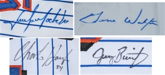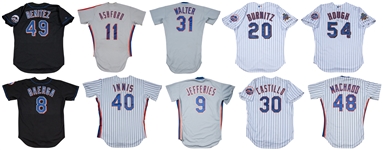 Offered is a lot of (10) New York Mets jerseys from various years. Included are black road jerseys from #8 Carlos Baerga & #49 Armando Benitez, grey road jerseys from #11 Tucker Ashford, #31 Gene Walter, and #9 Gregg Jefferies, and pinstripe home jerseys from #40 Jeff Innis, #30 Alberto Castillo, #48 Julio Machado, #20 Jeromy Burnitz & #54 Charlie Hough. Both the Burnitz and Hough jerseys have been signed. The signed jerseys have been pre-certified by PSA/DNA.