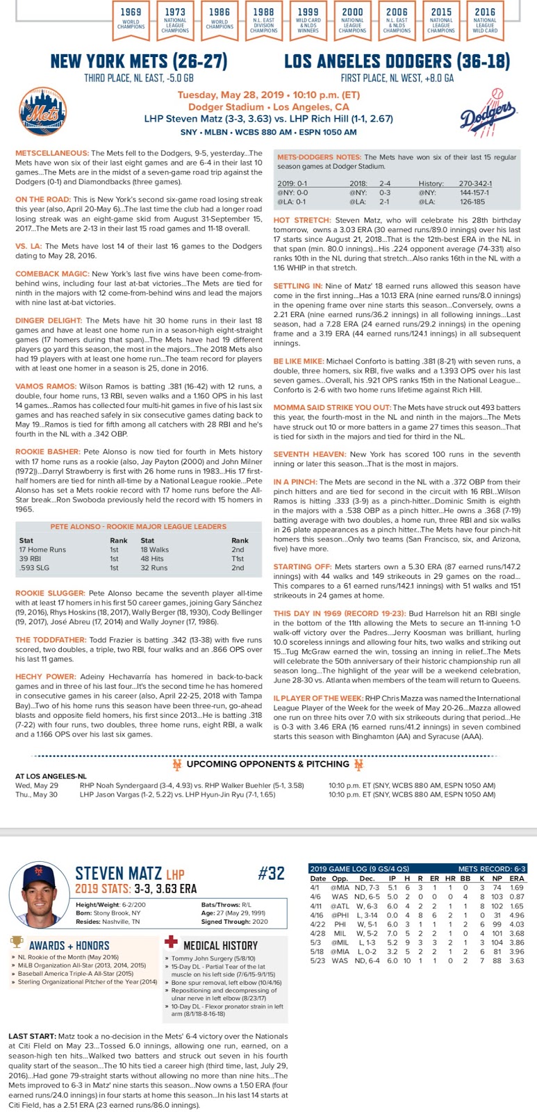 Mets Game Notes 5/28/19